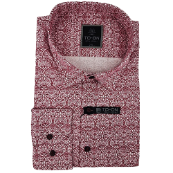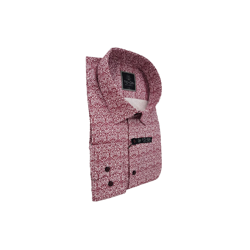 Koszula męska biała z bordowym wzorem TO-ON z długim rękawem o kroju slim fit (zwężana w talii).