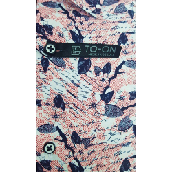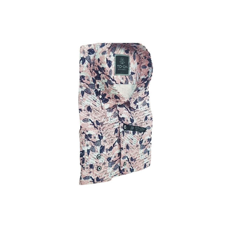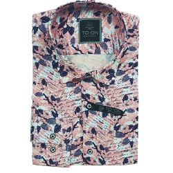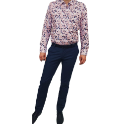 Koszula męska biała z różowo-bordowym odcieniem i granatowym wzorem  TO-ON z długim rękawem o kroju slim fit (zwężana w talii).